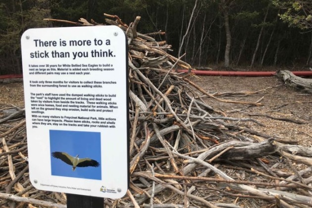 Secondly if Parks staff left the sticks at the trail heads, walkers would recycle one of these sticks for their direction of travel and hence not contribute to the removal of wood. End of argument. Back to real work for Parks staff, Game, Set and Match. Don’t bother me with your social media posts.