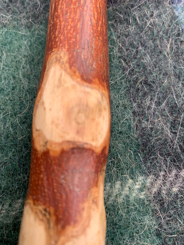 Out on the edges of the Sherbrooke forest, lies Sherbrooke Lodge road. A delightful no through access road for residents fortunate to own real estate. My walk on Christmas eve 2019 took me down this road as a thoroughfare to Grants picnic area to further my journey onwards to Belgrave. It would appear that around this time a Parks Vic work crew were cleaning up a cluster of new growth, sycamore maple. Casting my eye through the pile I selected this specimen as my walking stick for the rest of my walk and then into the workshop for further crafting. It now belongs to you.