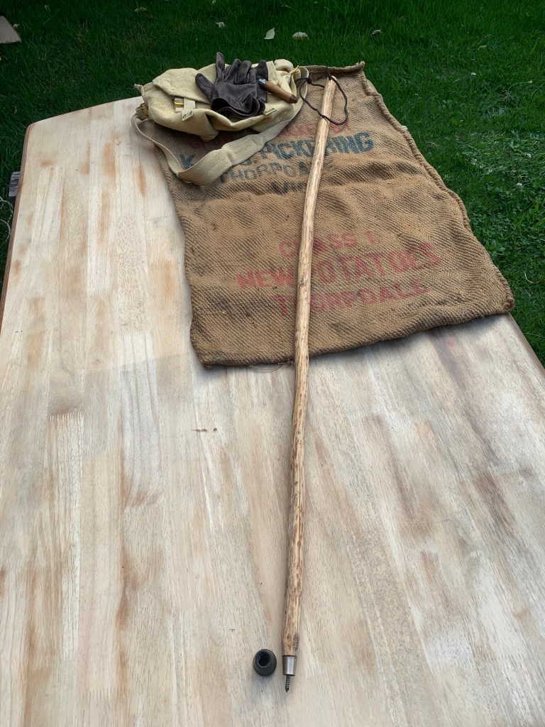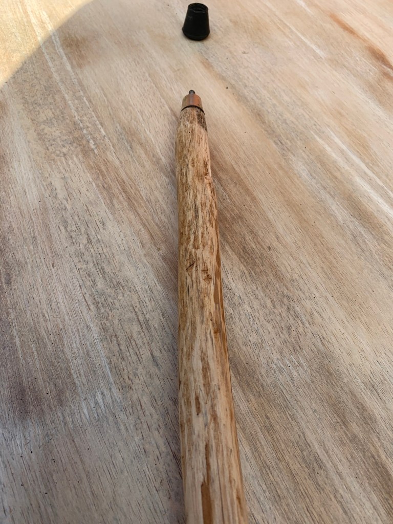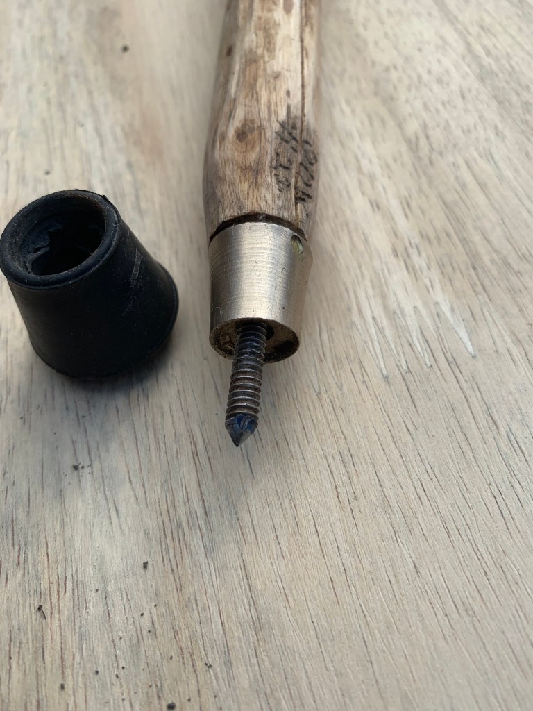 The completed stick length is 128.5 cm with the rubber stopper. It has a diameter of 26 to 21 mm and weighs 418 grams. It is suitable as a hand around hiking stick for heights of 170 cm to 190 cm. It was officially commissioned with serial #OOW22 on the 28th March 2021.